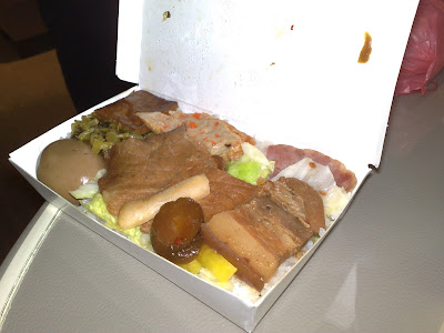 Other food include red roasted meat 红烧肉 and 甜不辣 'Tempurah" - mixed pieces of fishcakes, turnips, etc, with a sweet sauce ...