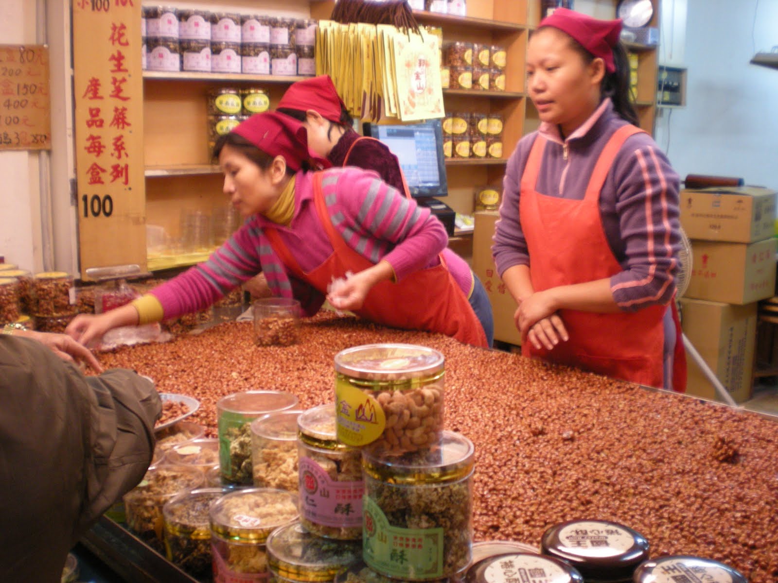 We took a bus to reach 九份 , and it is a busy little street, selling food, barang x 2... Go and get some of the roasted peanut candy (see below picture), its good...