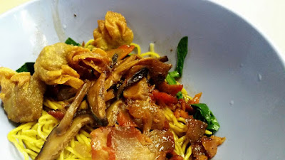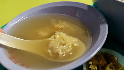 I ordered the big portion ($3.50), and was shocked by the big serving portion when the stall keeper handed the bowl of noodles to me... And I am right, super full after finishing the noodles... As I hated coriander/parsley leaves, I requested not to put them in... Also added a teaspoon of fine-chopped garlic (yes, MUST put in, if you are ok with the taste of raw garlic) and dash of vinegar (which I should have added more)... Also, do not reject the red chillies, they are not the spicy type but provides a additional flavour ...