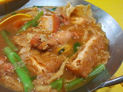 This is delicious... Its "Soupy Mixed Braised Flavour" (湿卤味), in a stall in the hawker centre besides OG People's Park, you know, the one with the famous Yong Tau Foo... This is quite nice, had it today, in fact... cost $4.50, comes with a bowl of white rice... It doesn't have the dark soy sauce "braise", but is rather like... "fermented beancurd (南乳/豆腐乳)+ red Yong Tau Foo sauce + etc"... serving portion is a bit small, but taste-wise is quite good...