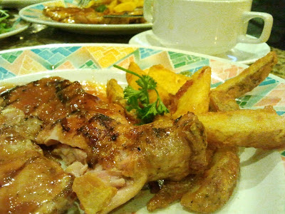 Found a new place for dinner!!! Right hidden inside one of the casino's corner!!! New Orleans BBQ... and they have meals redeemable by GPs!!! We ordered the Grilled Chicken set and Grilled Pork set to share the different meat... Meal comes with salad bar, (refillable) soup and (refillable) coffee/tea!!! 17 GPs only!!