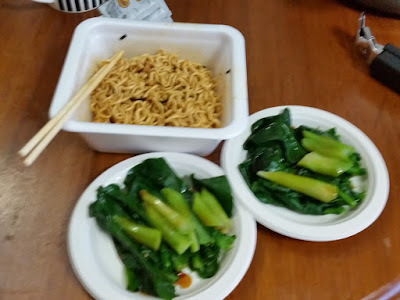 Bought this from Iroha Mart in Chinatown Point... I think it costs SGD2.90... can't really remember... but find this instant soba quite nice, so bought a couple that day. The soba has a nice chewy texture after cooked, and the overall taste is quite savoury-sweet with a tinge of spiciness. The small bits of mock (???) meat are hard to find after mixing though... Had this for lunch with some blanched kailan with teriyaki sauce (from Iroha Mart as well)...